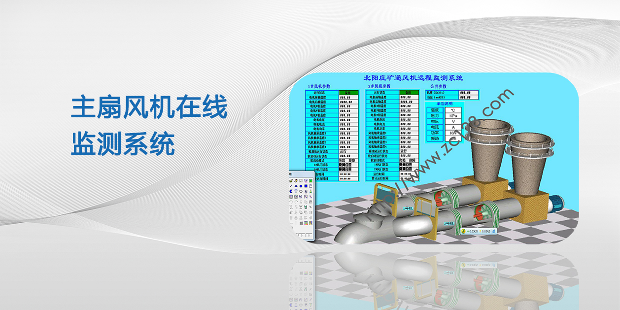 主扇風(fēng)機(jī)是煤礦建設(shè)和生產(chǎn)中關(guān)鍵而又重要的設(shè)備,運(yùn)行的好與壞直接關(guān)系到煤礦的安全。我公司研發(fā)的主扇風(fēng)機(jī)在線監(jiān)控系統(tǒng)主要用于煤礦主扇風(fēng)機(jī)系統(tǒng)的控制與監(jiān)測,是集變頻調(diào)速技術(shù)、PLC控制與采集及上位監(jiān)測、控制為一體的高新技術(shù)產(chǎn)品。該產(chǎn)品主要適用于煤礦主扇通風(fēng)機(jī)正常通風(fēng)及排放瓦斯生產(chǎn)過程的全自動化控制和對風(fēng)機(jī)等設(shè)備在線監(jiān)測。通過安裝在線監(jiān)控系統(tǒng)可以對主扇風(fēng)機(jī)實(shí)現(xiàn)全自動安全可靠地監(jiān)控,達(dá)到無人值守的目的。并針對風(fēng)機(jī)運(yùn)行的特點(diǎn),將系統(tǒng)做到安全、可靠、經(jīng)濟(jì)、操作方便。