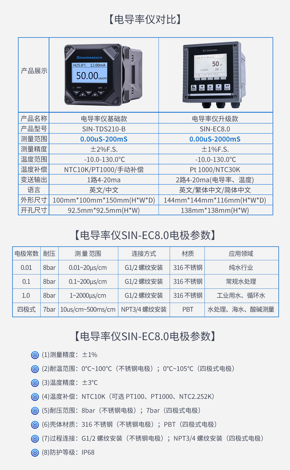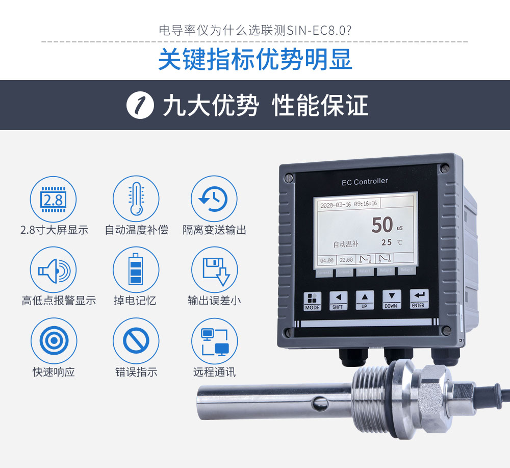 儀器用于工業(yè)上電導(dǎo)/比電阻/鹽度/溶解固體總量及溫度的測量