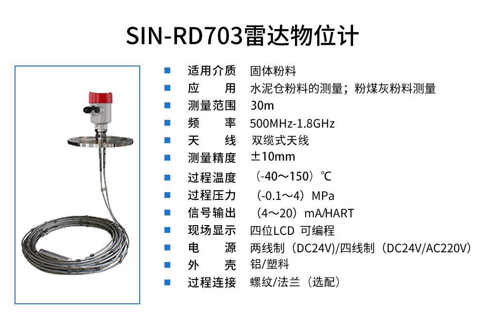 聯測_SIN-RD703雷達料位計_適用于水泥倉粉料_