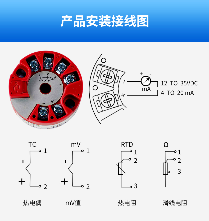 您的位置: 首頁 > 熱電偶 >智能一體化溫度變送器模塊轉4-20mA輸出熱電阻pt100熱電偶K型隔離