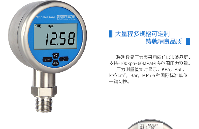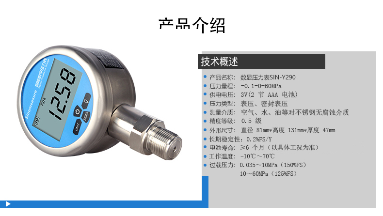 聯(lián)測(cè)數(shù)顯壓力表Y290,內(nèi)置高精度壓力傳感器,能夠 準(zhǔn)確的實(shí)時(shí)顯示壓力,并且具有精度高,長(zhǎng)期穩(wěn)定性好 的特點(diǎn)。