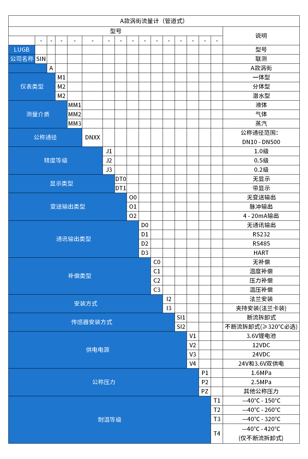 聯測_LUGB-SIN-A_渦街流量計_耐高溫抗震_溫壓補償_負40-420度_