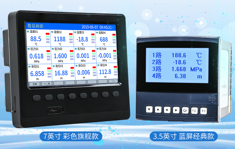 無紙記錄儀是將采集的數據/運算數據以時間為基軸記錄在儀器內部的存儲系統中,無消耗任何常用的記錄設施,如:紙張、筆墨。記錄在儀器內部的存儲數據,通過運算、模擬后顯示在液晶屏。常用顯示用液晶屏比較廣泛。在液晶屏屏幕上,可以顯示數字顯示、棒圖顯示、曲線顯示、報警列表等。無紙記錄儀采集的數據,常用的有:溫度、壓力、流量、液位、電壓、電流、濕度、頻率、振動、轉速等。